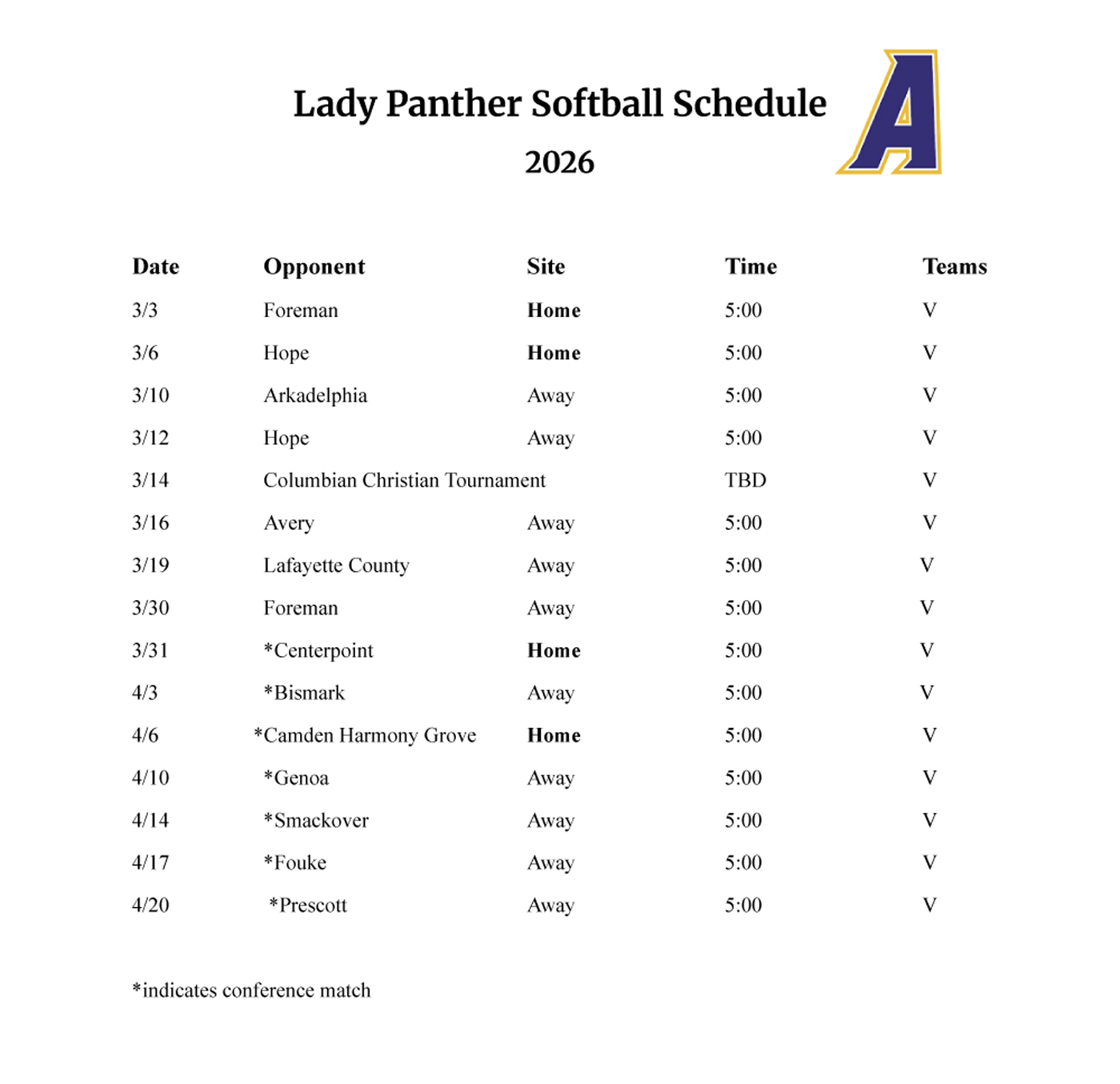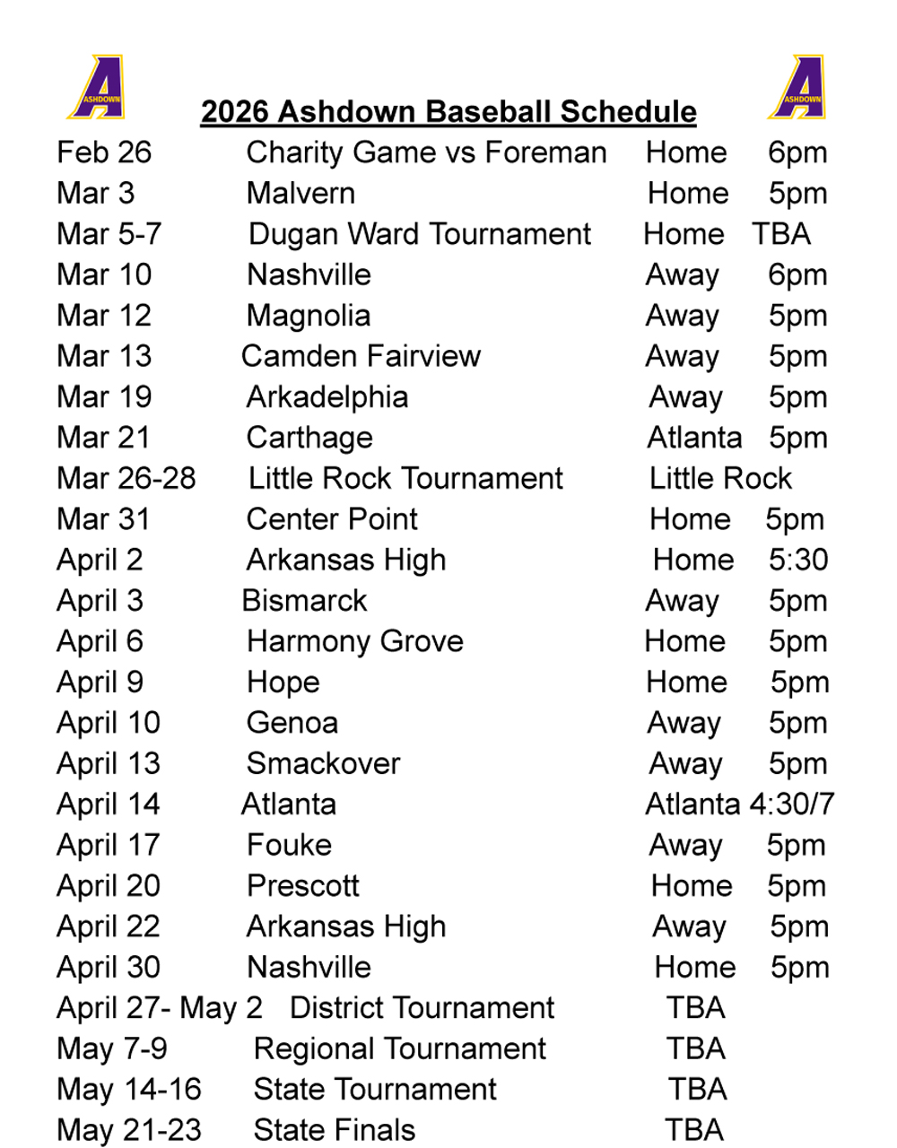 Ashdown Panther and Lady Panther Baseball/Softball Schedule