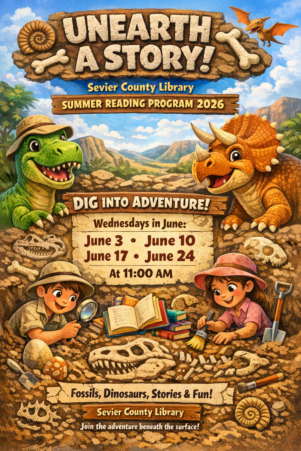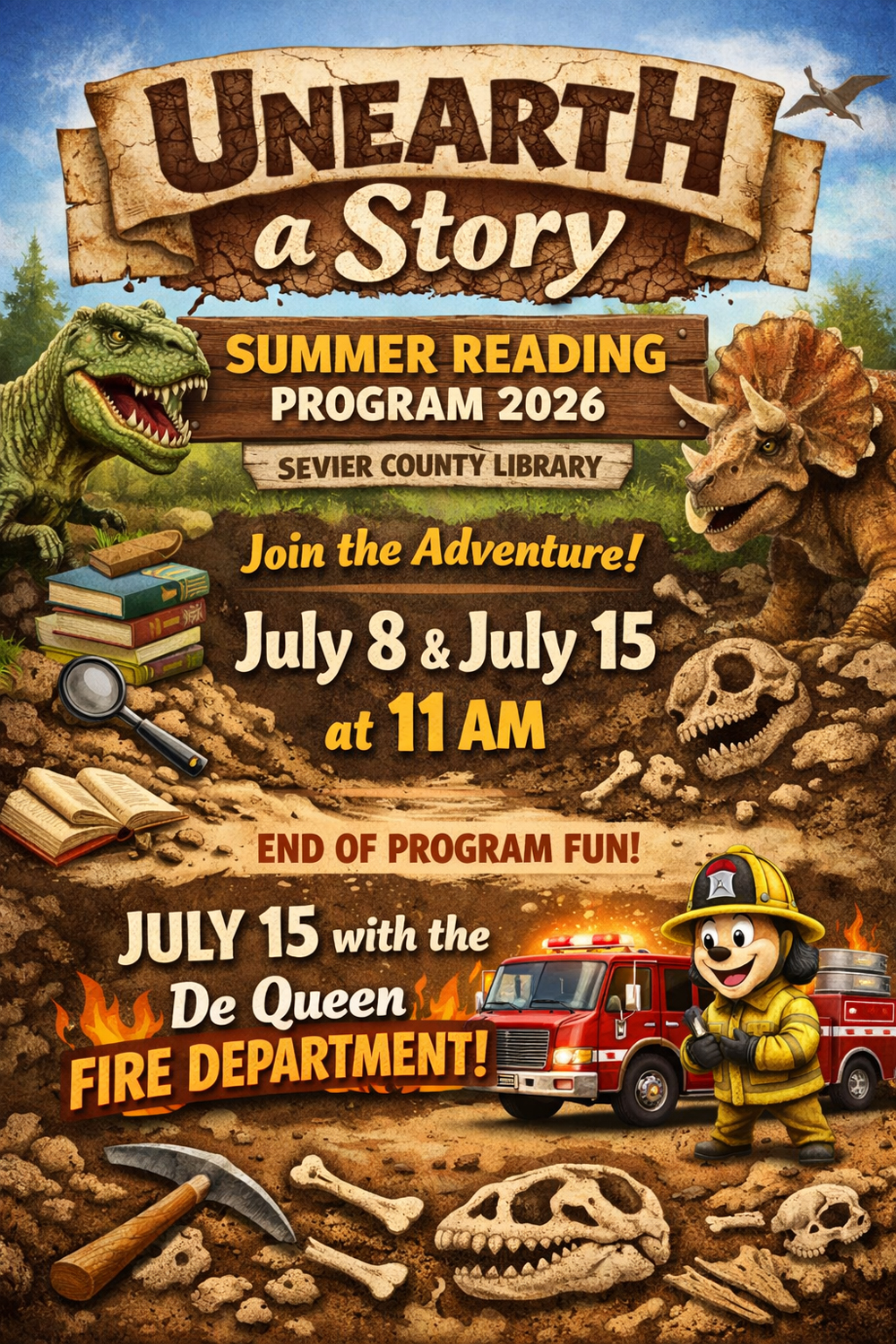 The Sevier County Library will host Unearth a Story! Summer Reading Program on Wednesdays, beginning June 3rd, through July 15th, at 11 pm. There will be fossils, dinosaurs, stories and fun. The De Queen Fire Department will be in attendance the final day of the program on July 15th.